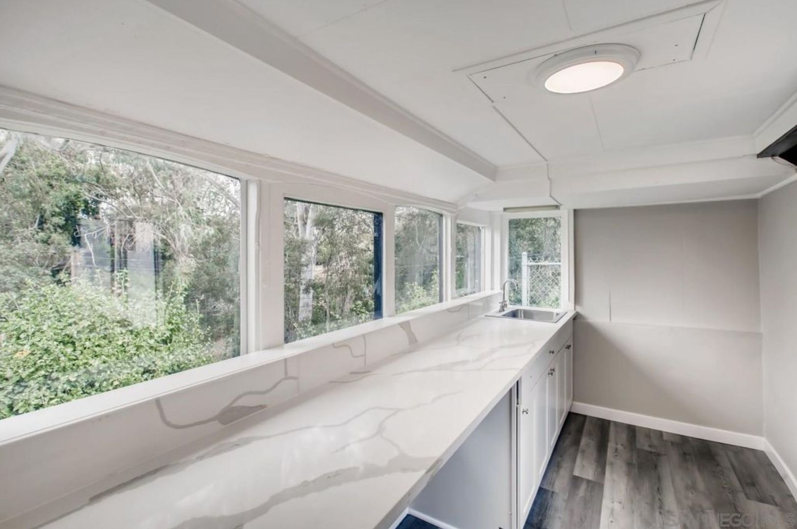 This unique property is partially comprised of an old trolley car! This space of the apartment home is currently being used as the living room, with views of the canyon. The other rooms in the home have nice upgrades such as vinyl plank flooring, quartz counters, spacious bedroom and bathroom.